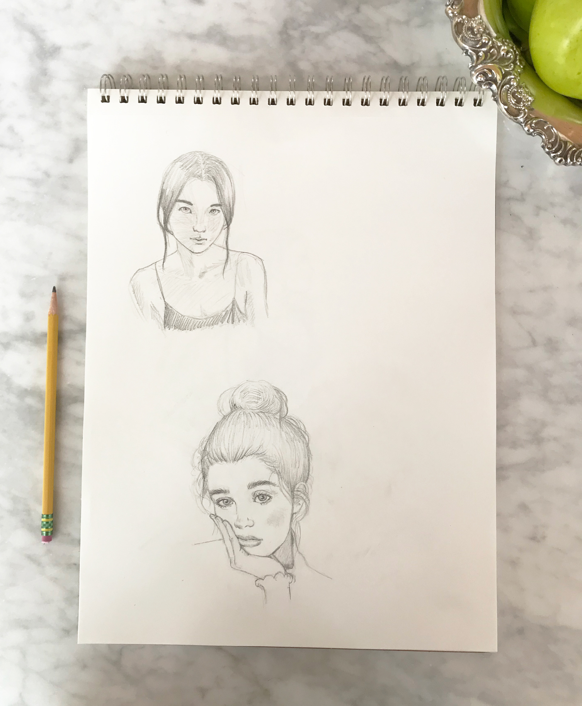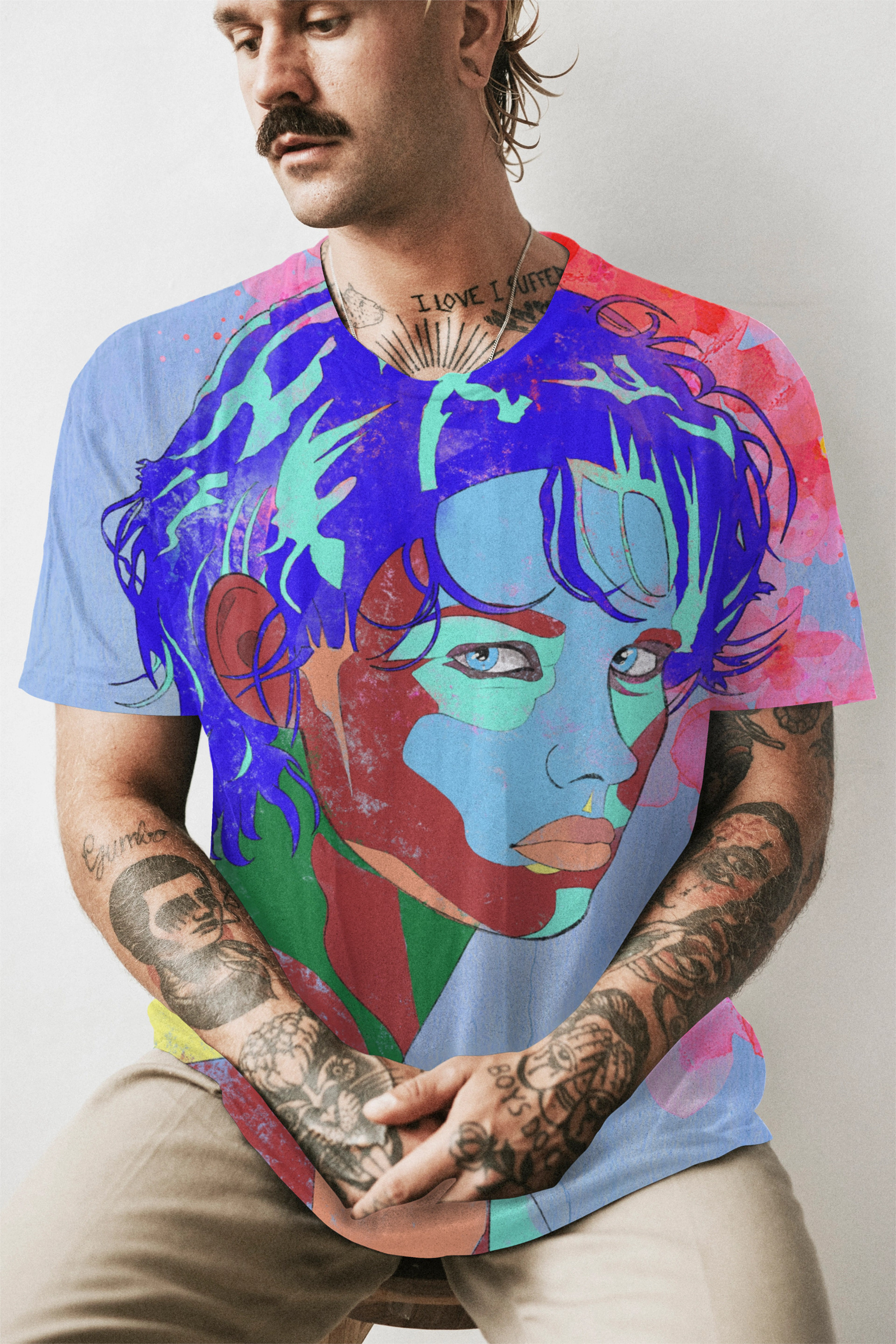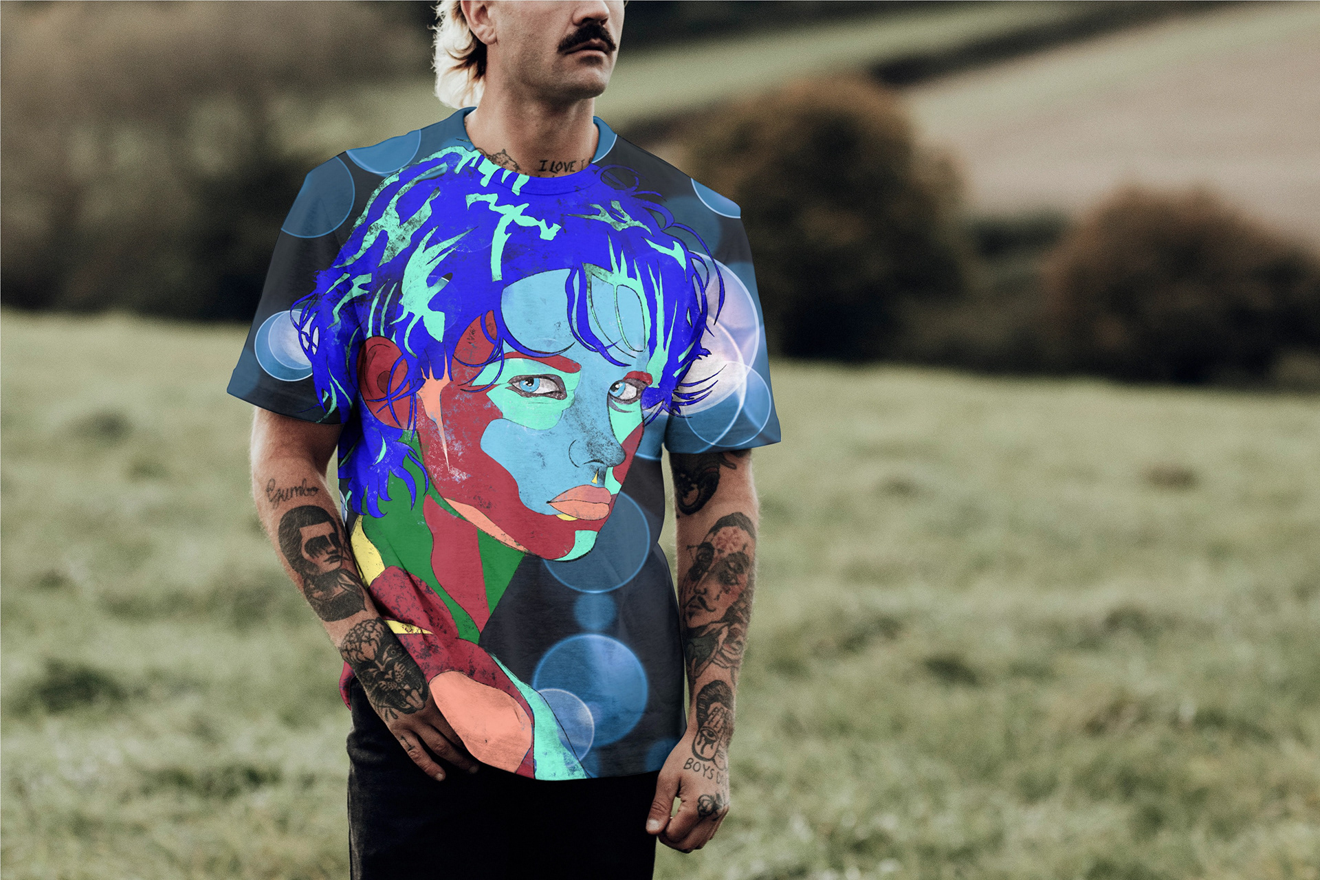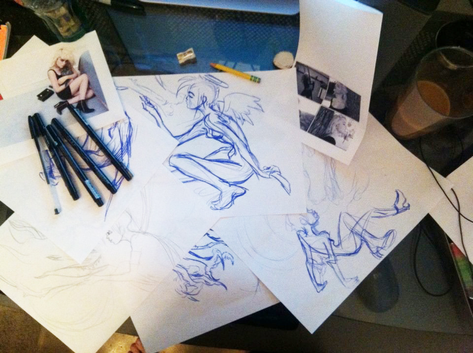 Drawings, digital paintings, and shirt designs.
