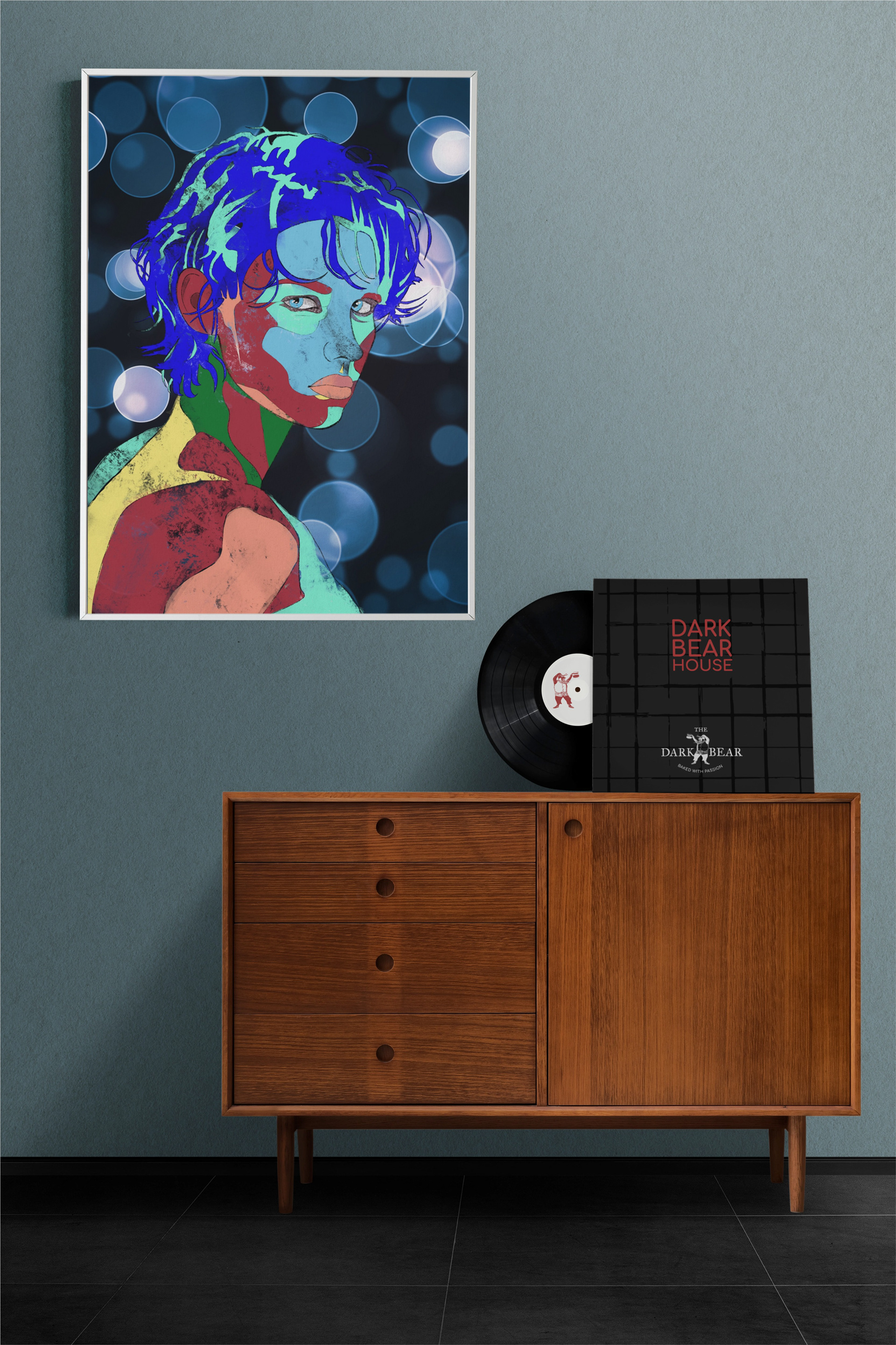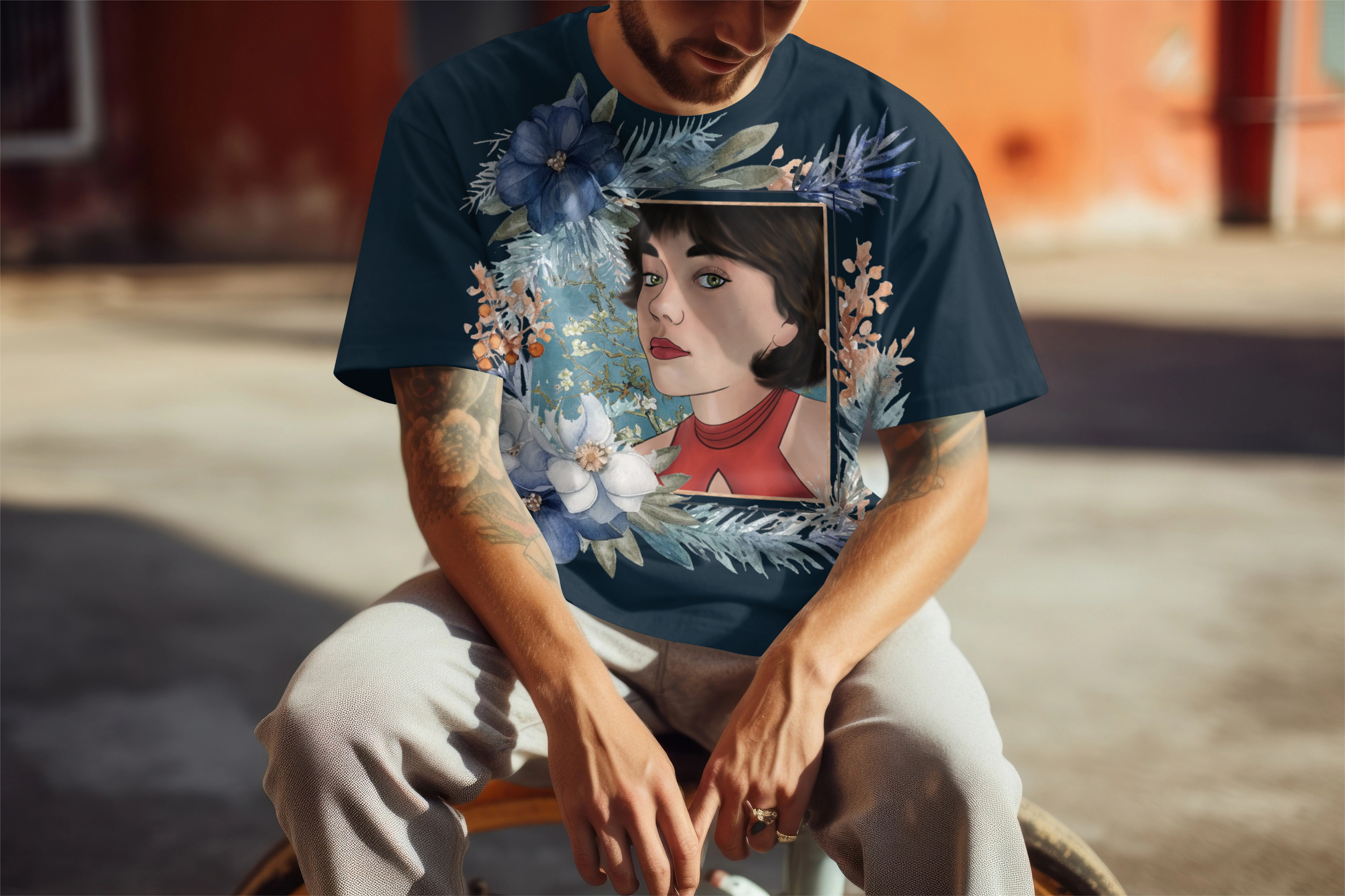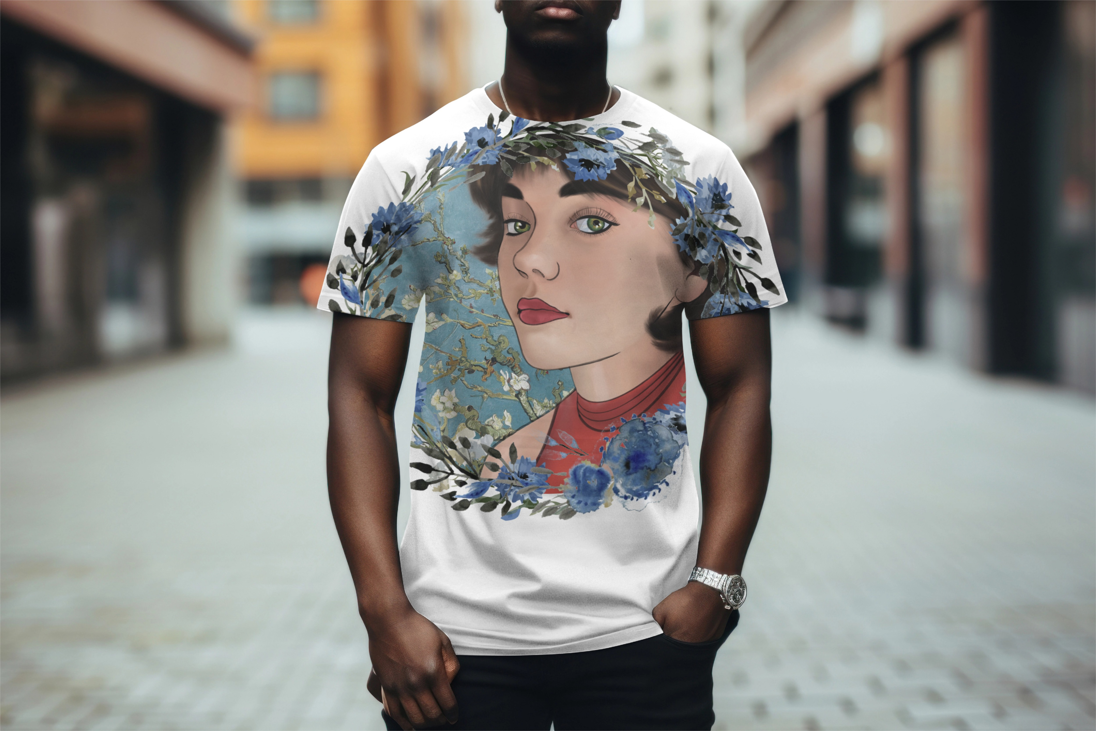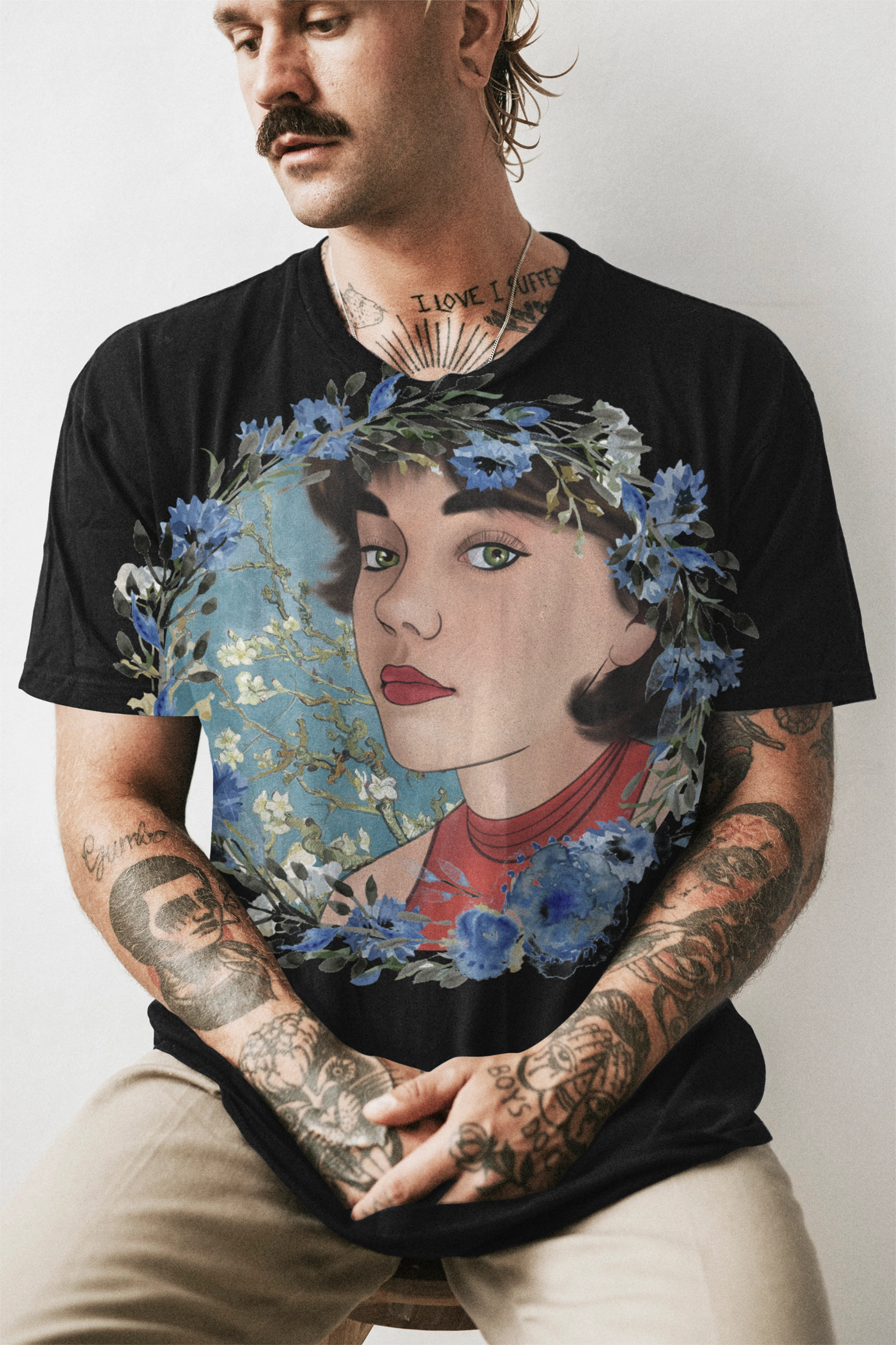 Drawings, digital paintings, and shirt designs.